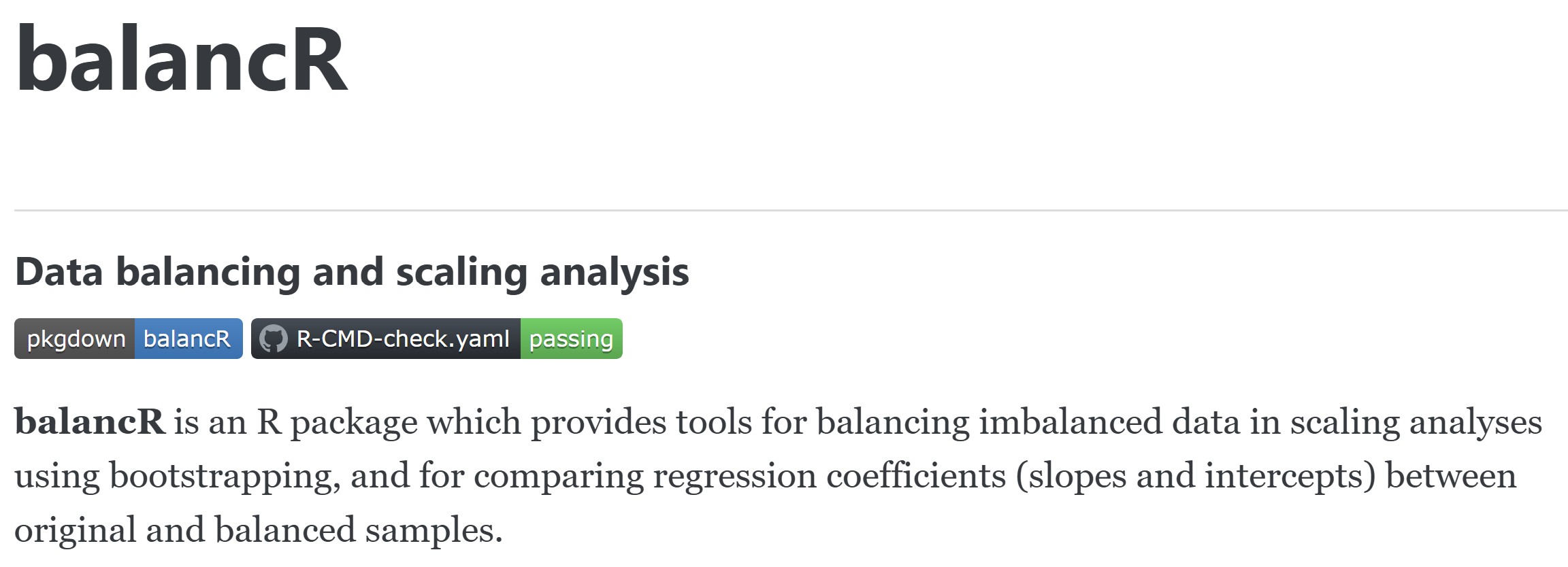 The statistical procedure for data balancing and fitting discussed in our recent GEB paper is now available as an R package! To learn more about balancR and installation instructions, click here.